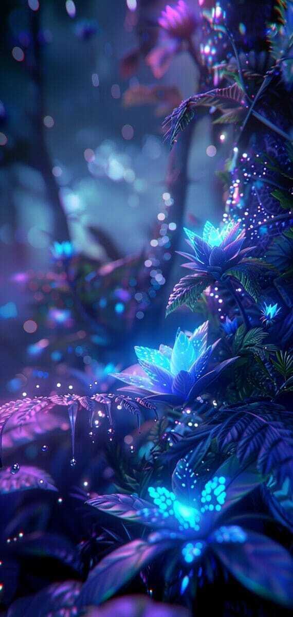 The color palette emphasizes jewel tones—hot pink, magenta, electric cyan, neon blue—creating contemporary fantasy aesthetic. Perfect for users seeking mystical, artistic, nature-inspired wallpapers with futuristic charm. Works beautifully on all smartphone models and screen resolutions.