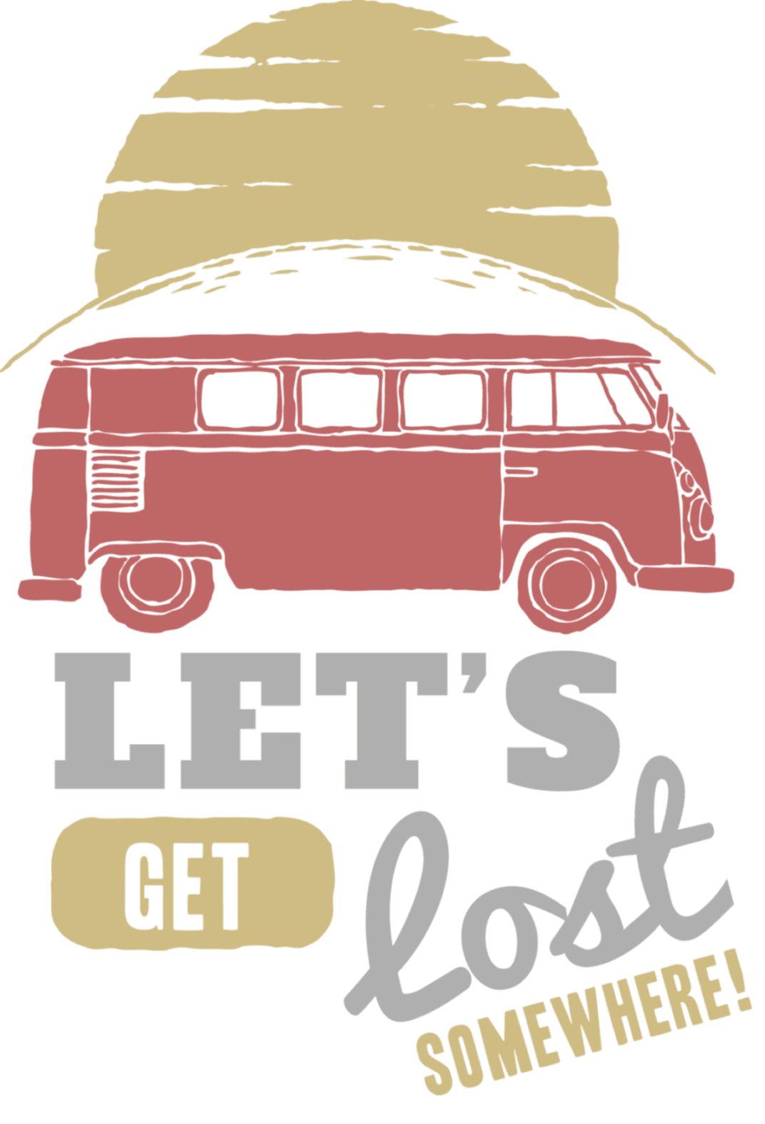 Let’s Get Lost Somewhere is a retro travel-themed typographic design featuring a classic vintage van and sunset-inspired shapes. The layout combines bold lettering with a hand-drawn illustration style, making it perfect for road trip lovers, campers, vanlife brands, and outdoor adventure creators.